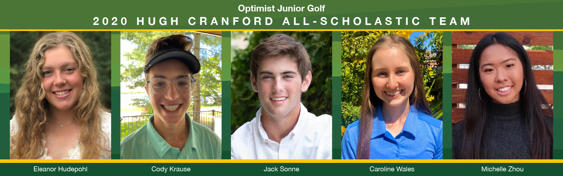Optimist Junior Golf recently announced the junior golfers of the 2020 Hugh Cranford All-Scholastic Team. Those making the team exemplified an impressive balance of academics, golf and community service. After reviewing the qualifications of a record number of impressive applicants, the Optimist Junior Golf Committee selected the following exceptional student athletes for the team: