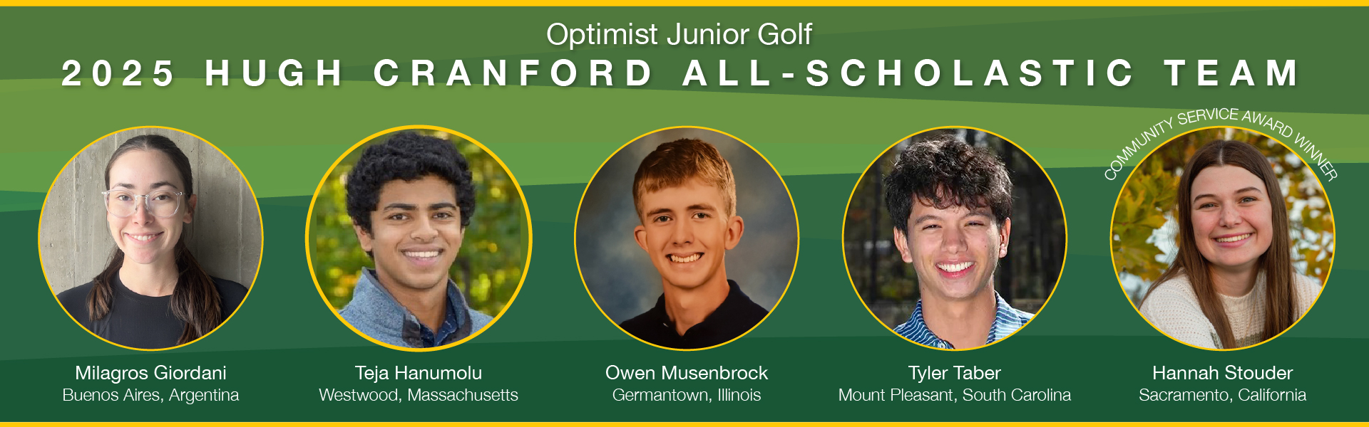 This team exemplified an impressive balance of academics, golf and community service. The All-Scholastic Team is named for Hugh Cranford, who served as executive director of Optimist International from 1967 to 1986.He was instrumental in starting the Optimist Junior Golf program and in 1978 led the efforts to co-sponsor the Optimist Junior World Golf Championships in San Diego, the forerunner to today's Optimist International Junior Golf Championships. Cranford passed away in August 2014.